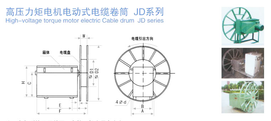 JD 系列電動卷筒是以力矩電機為動力,卷取力大。適用于電纜(軟管)較重移動距離較長的工況。