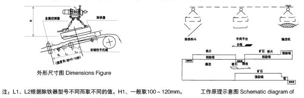 安裝在帶式輸送機的中部或頭部使用。適合于較大粒度礦石、煤炭、焦炭、石灰石、碎石中除去鐵磁性異物。